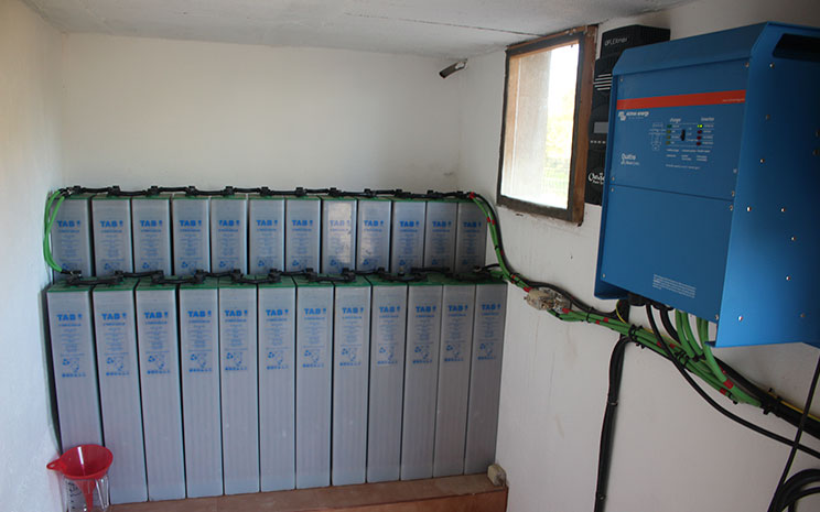 La planta de baterías se componen de varias unidades colocadas en serie para aumentar su cantidad de acumulación, dependiendo de la necesidad de cada cliente se instalan más o menos unidades, hay una amplia variedad de posibilidades, una de las últimas incorporaciones son las baterías de litio, algunos modelos de estas baterías llevan ya incorporado el inversor cargador y se pueden controlas desde un Smartphone.